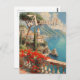 Transporte-se para a costa encantadora de Amalfi, em Itália, com este cartão postal de viagens vintage. O Mar Mediterrâneo ceruliano estende-se, emoldurado pelos icônicos penhascos de Amalfi. No primeiro plano, flores vibrantes de gerânio vermelho acrescentam um toque de romance. Deixem que este cartão postal evoce o alento da Amalfi Italia.