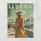 Este encantador poster vintage retrata uma mulher graciosa num vestido clássico dos anos 50 que se encontra no porto de Lisboa. Os barcos de pesca flutuam suavemente na água atrás dela, enquanto o sol lança um ouro quente sobre os prédios históricos no fundo. A paleta de cor retrorativa suave e as texturas nostálgicas captam a elegância da vida costeira do século médio em Portugal. Perfeito para amantes da moda da safra, cenas à beira-mar e viagem-arte da Europa eterno.