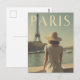 Este elegante poster vintage captura um momento parisiense romântico: uma mulher num vestido fluente da década de 1950 fica graciosamente perto do rio Sena, olhando em direção à Torre Eiffel. A cena é banhada em tons quentes e nostálgicos, com reflexões suaves sobre a água e a arquitetura parisiense clássica em segundo plano. O trabalho de arte evoca o charme eterno de Paris do médio, combinando a moda vintage com marcos icônicos. Uma peça perfeita para amantes da elegância retrorreflectora, Paris, e arte clássica de viagem.