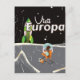 Poster de viagens vintage Europa Faça uma viagem até Europa, Lua de Júpiter com esta poster viagens vintage com Max e o seu cão, ao fundo é um belo foguete verde-retrô.