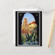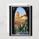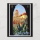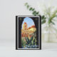 Belo poster de viagens italiano de vintage anunciando a bela cidade de Palermo. Mostra uma bela vista de um jardim italiano através de uma janela arqueada.