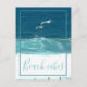 Envie vibrações de praia para seus amigos e familiares com este cartão postal elegante. O design apresenta as vibrantes ondas do mar azul aqua e branco da praia de Maroubra, em Sydney, Austrália. A tipografia moderna apresenta as palavras "Vibrações da praia". Você também pode personalizá-lo escolhendo entre outras opções de papel.
