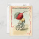 Vintage, rabanete vitoriano a andar de bicicleta com cartão postal. Imagem vitoriana restaurada e de alta qualidade.