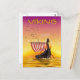 Viking longship navegando no oceano ou no mar do norte durante um belo pôr do sol.