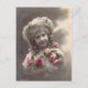 Vintage retrato de uma menina segurando rosas.