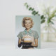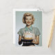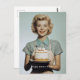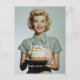 Uma mulher clássica, ao estilo dos anos 50, com curvas glamourosas e um sorriso brilhante, segurando um bolo maravilhosamente decorado, evocando nostalgia e encanto retrô.