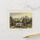 Cartão-postal com uma ilustração vintage digitalmente limpa e melhorada do Castelo de Alnwick, em Northumberland, Inglaterra, por Francis Orpen Morris, de 1870, fotografa o castelo no fundo com uma ponte e um rio no primeiro plano. A primeira construção do castelo data de 1096. Em 1309 foi comprado por Henry Percy, e é propriedade da família Percy desde então. É o segundo maior castelo habitado na Inglaterra e tem sido usado como cenário em muitos filmes e séries de televisão.
