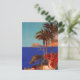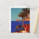 Anúncios de Viagem francês e europeu - Praia, aldeia, pessoas, árvores, mar azul e ilustração do céu