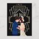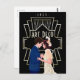 A safra romântica vibra com este design com o tema dos anos 20 com um quadro de ouro Art Dec e a Ilustração de um casal de 1920 de vidro e tipografia dentro de um quadro de ouro e 1925 no topo.