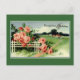 Um belo cartão de aniversário com rosas e paisagem rural.