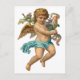 Linda imagem de um cherub com flores e uma faixa de turquesa.