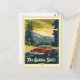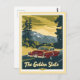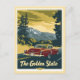 Qualquer um adoraria receber este cartão postal viagens vintage com uma ilustração retrô de um carro nas montanhas da Califórnia, o Estado Ouro!