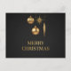 Festive restored antique Christmas card illustration featuring colorful spray of green and red holly gathered in a red bow with a shiny brass bell, cute bird and Merry Christmas message in fancy gold script.