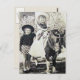 O garotinho senta-se ao longo do pônei enquanto sua irmã se posiciona ao seu lado neste cartão postal de reprodução