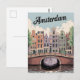 Mergulhe no encanto de Amsterdã com este cartão postal estilo vintage. Apresentando os canais icônicos da cidade, as casas com habilidades históricas, e pontos de referência culturais vibrantes, a design captura a beleza eterno e o caráter único da capital holandesa. Perfeito para colecionadores de viagem de arte e de manutenção de vinhetas europeias.