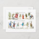 Desenhos de linha antigos que retratam uma variedade de caracteres em vários figurinos e poses.