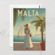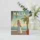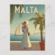 Este poster vintage encantador apresenta uma na moda em um vestido clássico dos anos 50, rolando ao longo de um sunny promenade em Malta. Atrás dela, o Mediterrâneo brilha e a arquitetura tradicional maltesa trava a margem da água. Texturas retrorreflectoras suaves e tons quentes evocam a elegância eterno da vida costeira do século médio na ilha. Uma peça perfeita para fãs de moda antiga, charme à beira-mar, e arte nostálgica de viagem europeia.