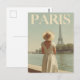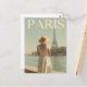 Este elegante poster vintage captura um momento parisiense romântico: uma mulher num vestido fluente da década de 1950 fica graciosamente perto do rio Sena, olhando em direção à Torre Eiffel. A cena é banhada em tons quentes e nostálgicos, com reflexões suaves sobre a água e a arquitetura parisiense clássica em segundo plano. O trabalho de arte evoca o charme eterno de Paris do médio, combinando a moda vintage com marcos icônicos. Uma peça perfeita para amantes da elegância retrorreflectora, Paris, e arte clássica de viagem.