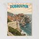 Capture a beleza eterno de Dubrovnik com este cartão-postal nostálgico! Apresentando as icônicas paredes medievais da cidade e telhados de laranja vibrantes ao longo da impressionante costa Adriática. O filtro de safra desbotada ao sol e o efeito de papel envelhecido evocam um senso de história, enquanto "Dubrovnik" em uma fonte retrô estilizada adiciona um toque de elegância clássica.