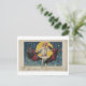 Este cartão-postal é uma reprodução de um cartão-postal antigo do Dia das Bruxas que apresenta um poema, demônios e morcegos.