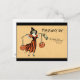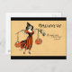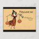 Um cartão de saudação fofo e vintage de Halloween de uma bruxa, segurando sua vassoura sobre seus ombros, com lanternas de Jack o penduradas em cada lado da vassoura, como um balanço. A bruxa é vestida por um cabelo preto pontiagudo, um vestido listrado laranja e preto, com um corset, e saltos pretos. Ela tem cabelo louro, amarrado em um pão, e pele justa. Ela está se posando como a placa de astrologia de Libra. Muito fofo e simples. Na saudação, diz, "Halloween, um tempo feliz e alegre." Excelente para quem ama o Halloween, bruxas, abóboras e cartões de saudação vintage. Veja meu compro, SpoLookGhost, para mais Halloween e design de bruxas, ou arte vintage do Halloween.