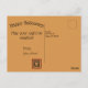 Cartaz do Dia das Bruxas mostrando uma bruxa voando através de um céu noturno estrelado sobre campos com abóboras, um gato preto e uma coruja. A bruxa está esboçada em estrelas. Este é de um design de cartão de Halloween de 1913.