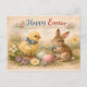 Cartão Postal Vintage Happy Easter Bunny and Chick