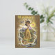 Um belo cartão postal vintage com um poster de viagens da United Air Lines de uma mulher havaiana dançante.