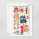 Este cartão-postal é uma reprodução de um cartão-postal vintage mostrando Little Miss Muffet como uma boneca de papel, com roupas para vestir e uma aranha para se sentar ao seu lado.