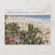 Cartaz do Vintage mostrando visitantes na praia em Miami, na Flórida. O cartão postal diz: "Milhares Diários, buscando Raios de Saúde do Sol, Miami Beach, Fla."