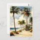 Qualquer um adoraria receber este cartão postal viagens vintage com uma ilustração retrô das palmeiras e do oceano em Miami Beach, Florida!
