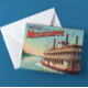 Um cartão postal nostálgico do Mississippi apresentando um clássico barco a vapor de roda de remada cruzando ao longo do rio, com uma mansão sulista ao fundo — capturando o charme do Estado Magnolia.