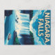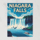 Um clássico poster de viagens vintage captura as poderosas Cataratas Niágara, com dois barcos-excursão navegando nas águas corridas abaixo, todos sob um céu azul dinâmico com nuvens suaves. "NIAGARA FALLS" aparece de forma destacada no topo.