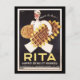 Para a sobremesa escolhida, esta poster sugere a Rita Waffles que pode ser comprada em liso/seco ou enchida/recheada. O artista deste poster de anúncio de safra foi Leon Dupin.<br>() Dupin era um artista francês. Ele foi autodidata, mas gradualmente ganhou um lugar na publicidade quando entrou para Joseph Charles Printing como artista comercial em 1926.