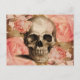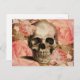 Esse design doçamente escuro apresenta uma colagem de arte vinda, incluindo um desenho anatômico do crânio e uma ilustração botânica das rosas cor-de-rosa.