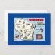 Este é um cartão postal, estilo antigo, maravilhosamente desenhado, com um mapa de Wisconsin junto com o estado pássaro, flor, bandeira e animal.