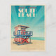 Retro Miami South Beach design, com estrelas e listras na cabana do alto-mar em branco vermelho e azul nas areias de South Beach contra um céu azul com vintage