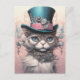 Cartão Postal Vintage Steampunk Cat em Blue Tophat