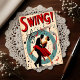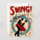 • This eye-catching vintage-inspired postcard captures the vibrant energy of swing dancing, featuring a stylish couple mid-dance surrounded by musical notes and hearts. Perfect for music and dance enthusiasts, this design brings the joy and rhythm of swing music to life. Ideal for dance studios, event promotions, or vintage décor.
