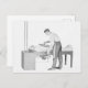 Este postal mostra uma fotografia antiga de um homem tirando um raio-x de outro homem.
