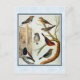 Cartão postal com uma imagem de safra melhorada e digitalmente limpa dos Finches de Zebra masculinos e femininos, das certeiras-zebra africanas masculinas e femininas, dos Finches de Morango masculinos e femininos, e de uma Finch de Três Colores. Ilustração colorida da história natural de W. Rutledge do The Illustrated Guide of Canaries and Other Cage-Birds, 1878. Moldado e apoiado com uma textura de pergaminho azul claro.