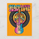 Design de texto retrô de amor pela paz e música com símbolo de paz/gravação de vinil e guitarra.