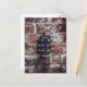Um postal de excelente para guitarristas, músicos e amantes da música. Esta design inclui uma foto clássica de violão inclinada sobre uma parede de tijolos.
