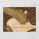 Cartão Postal. Foto de estilo antigo (siena) mostrando uma mão masculina pegando as cordas de um violão elétrico. Palavras no fundo dizem, "Só pego desta vez para te mandar um bilhete."