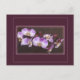 As pequenas beleza da natureza! A maior parte das orquídeas normalmente à venda são híbridos que foram criados especificamente para suas flores e facilidade de atendimento em residências e escritórios. Personalize este cartão postal de uma bela orquídea Phalaenopsis também conhecida como "orquídea-mariposa" sobre fundo escuro. A fotografia é emoldurada por uma grande estrutura roxa e várias linhas finas. Em "Personalizar", preencha o campo modelo com suas palavras, remova todo o texto e/ou clique em "Personalizar!" para adicionar texto como um nome, verso ou slogan. Ao personalizar, você também pode adicionar texto à parte frontal do cartão.