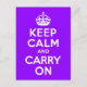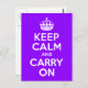 Versão moderna "Manter calma e continuar" roxa e branca do poster clássico.