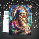 Cartaz de Natal com o verso Bíblia, Luke 1:37, "Porque nada será impossível com Deus." Cartão de Natal religioso. Frente é uma Virgem Maria com Jesus Bebê no estilo do mosaico azulejo.
