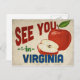 Um cartão postal encantador da viagens vintage Virginia apresentando uma adorável maçã vermelha, junto com um texto divertido no estilo retrô que diz, "Vemo-nos na Virgínia"