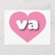 Este cartão-postal apresenta um coração cor-de-rosa vibrante contendo as letras maiúsculas, brancas, em negrito, arredondadas, va, uma abreviação lúdica para o estado de Virgínia, o antigo estado dominó. O reverso do cartão postal é vazio, aguardando seus sentimentos manuscritos ou texto personalizado.