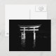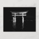 Foto preta e branca do grande torii no mar, no Shrine Itsukushima, na ilha de Miyajima, à noite.